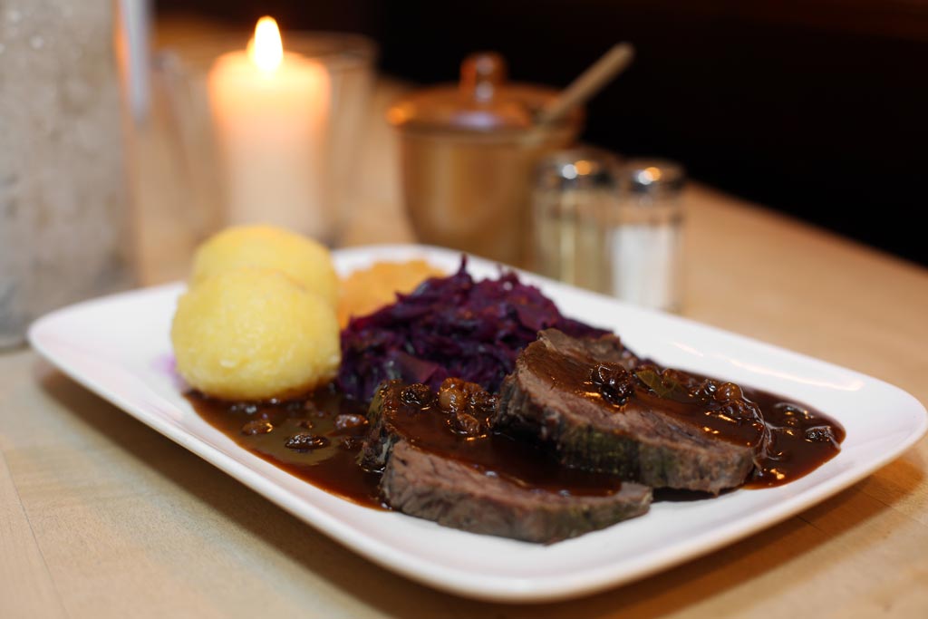 - Rheinischer Sauerbraten (vom Pferd) mit Rotkohl und Kartoffelklößchen